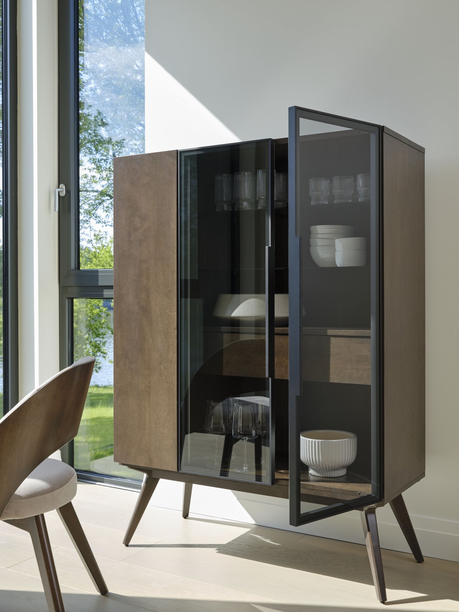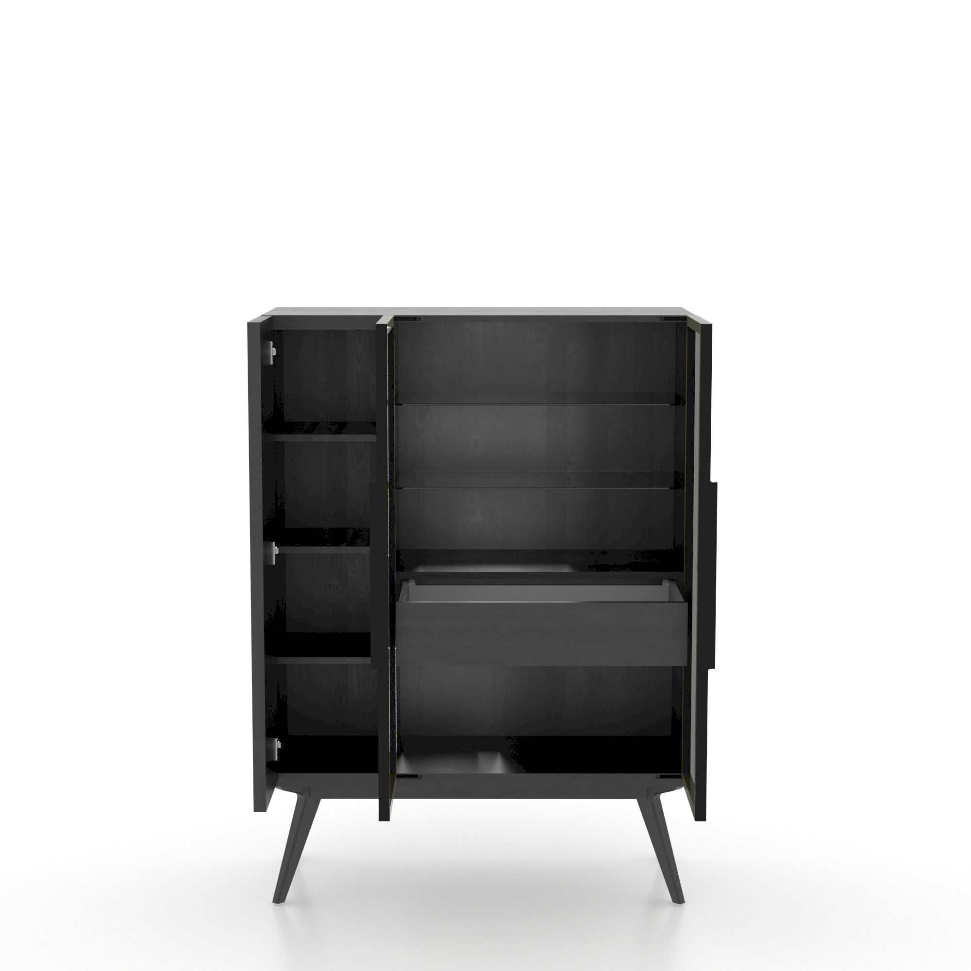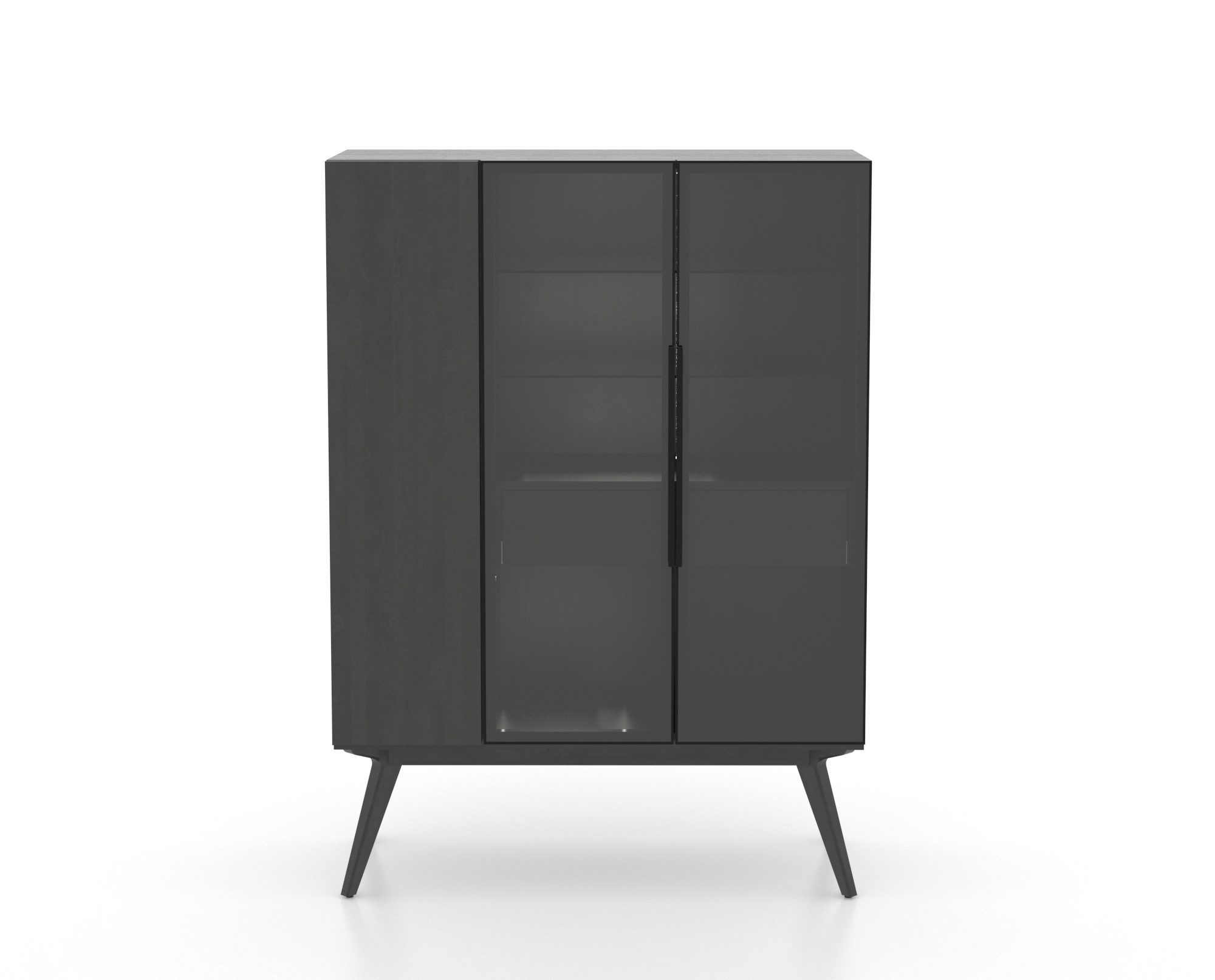Without any doubt, this majestic contemporary buffet will be a statement piece in your dining room. Enjoy this high-quality solid wood piece for years. You will love its functional storage spaces, beautiful smoked glass doors and angled legs!