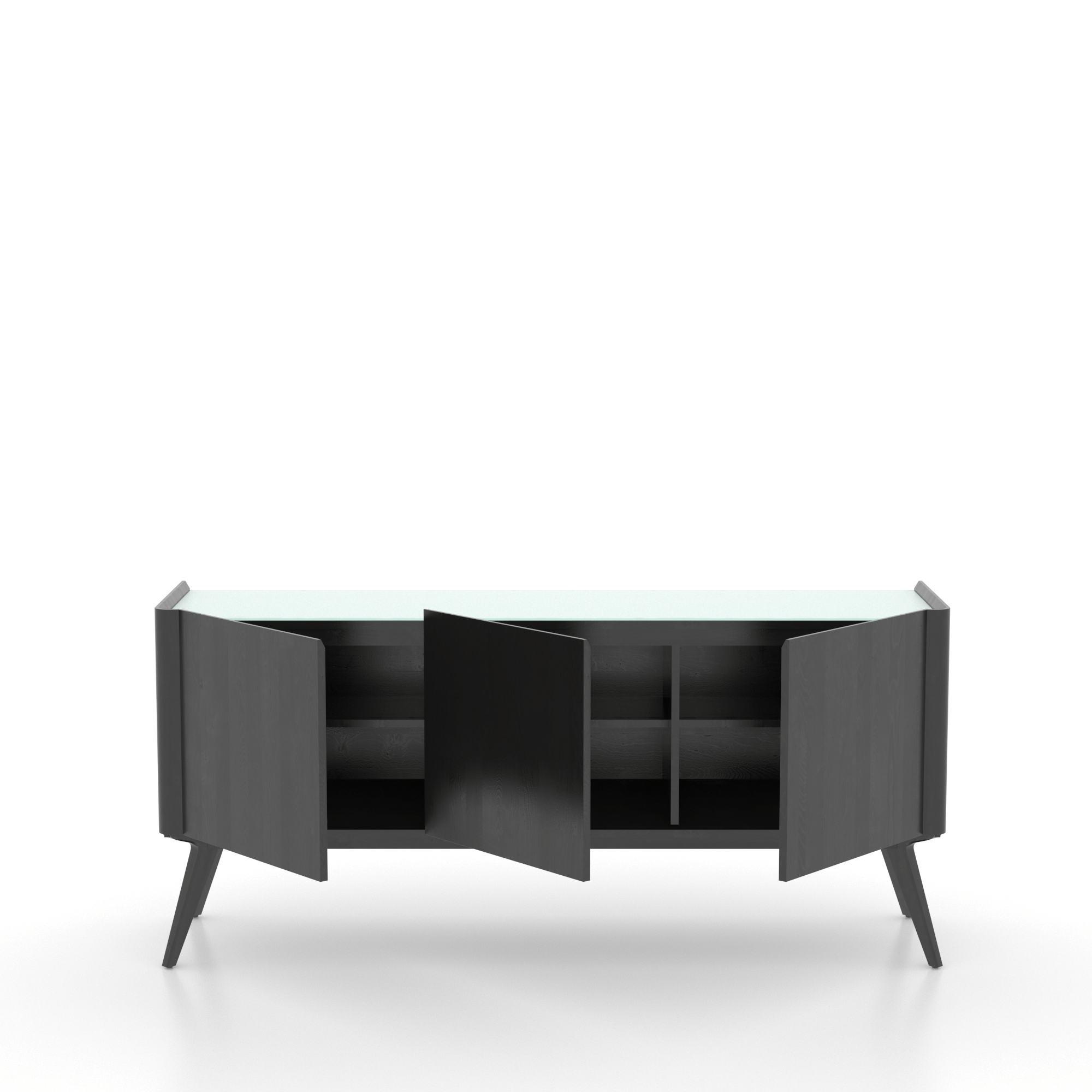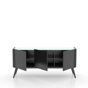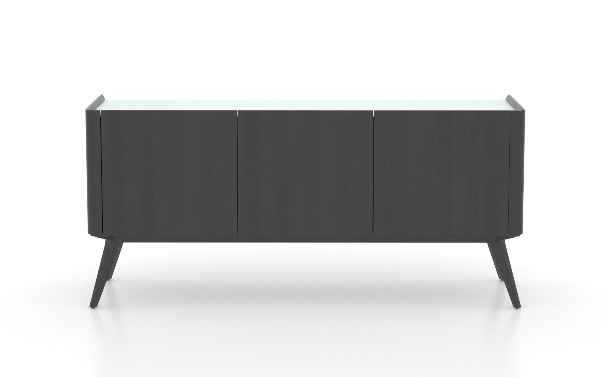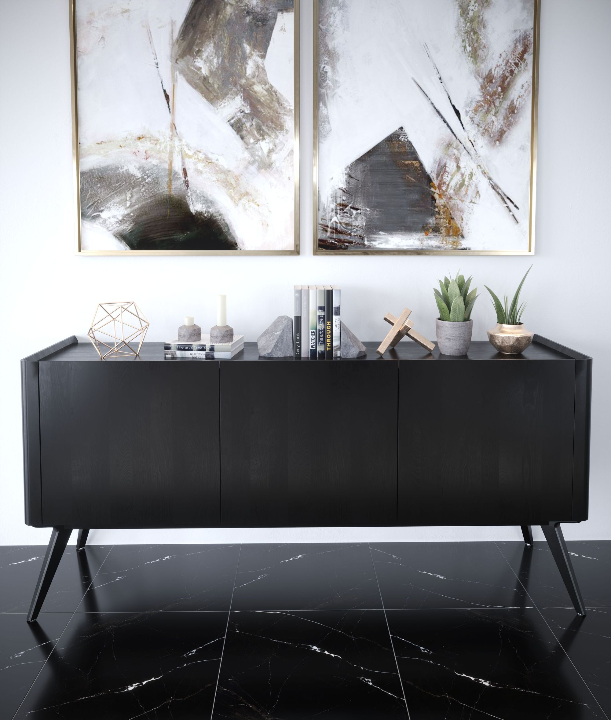 This majestic modern buffet with a somewhat Scandinavian flair will bring purity and elegance to your decor with its rounded edges and minimalist feel. It will also provide you with ample storage space thanks to its three closed cabinets.