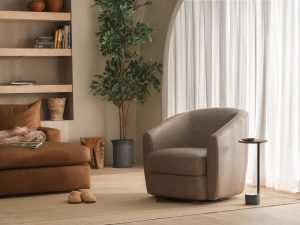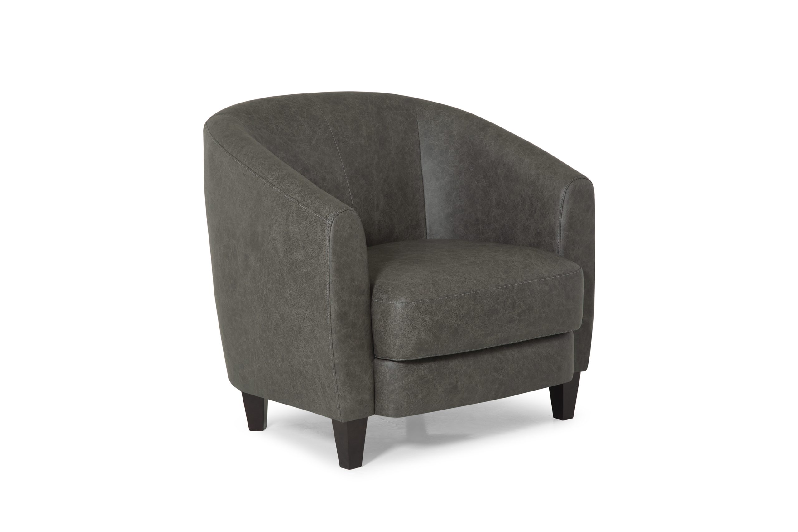 This classic go-anywhere tub chair offers a choice between stationary or swivel base. Tight back and seat with vertical seams in the back add detail. Choose just the chair or add two matching throw pillows for extra comfort.