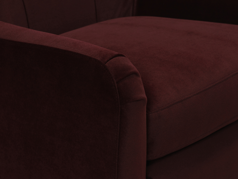 Scarlett has a completely removable and reversible seat cushion when ordered in fabric, reversible seat insert when ordered in leather and a choice of walnut or black ash legs.