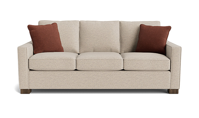 The Meta sofa is a sophisticated style with welting that borders the seats and the sloped arms. This style is great for smaller spaces with a petite structure and classic looks this style is sure to fit into any space. This collection comes in a variety of materials choices and configurations to make it into a sectional as well. This custom sofa is proudly made in Canada.