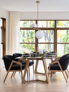 This gorgeous glass-top rectangular table with its impressively crafted wood legs will bring a modern touch to your dining room decor. You can even adapt this model to your interior by selecting the color of the metal accents. Two beautiful options are available: gold or silver.