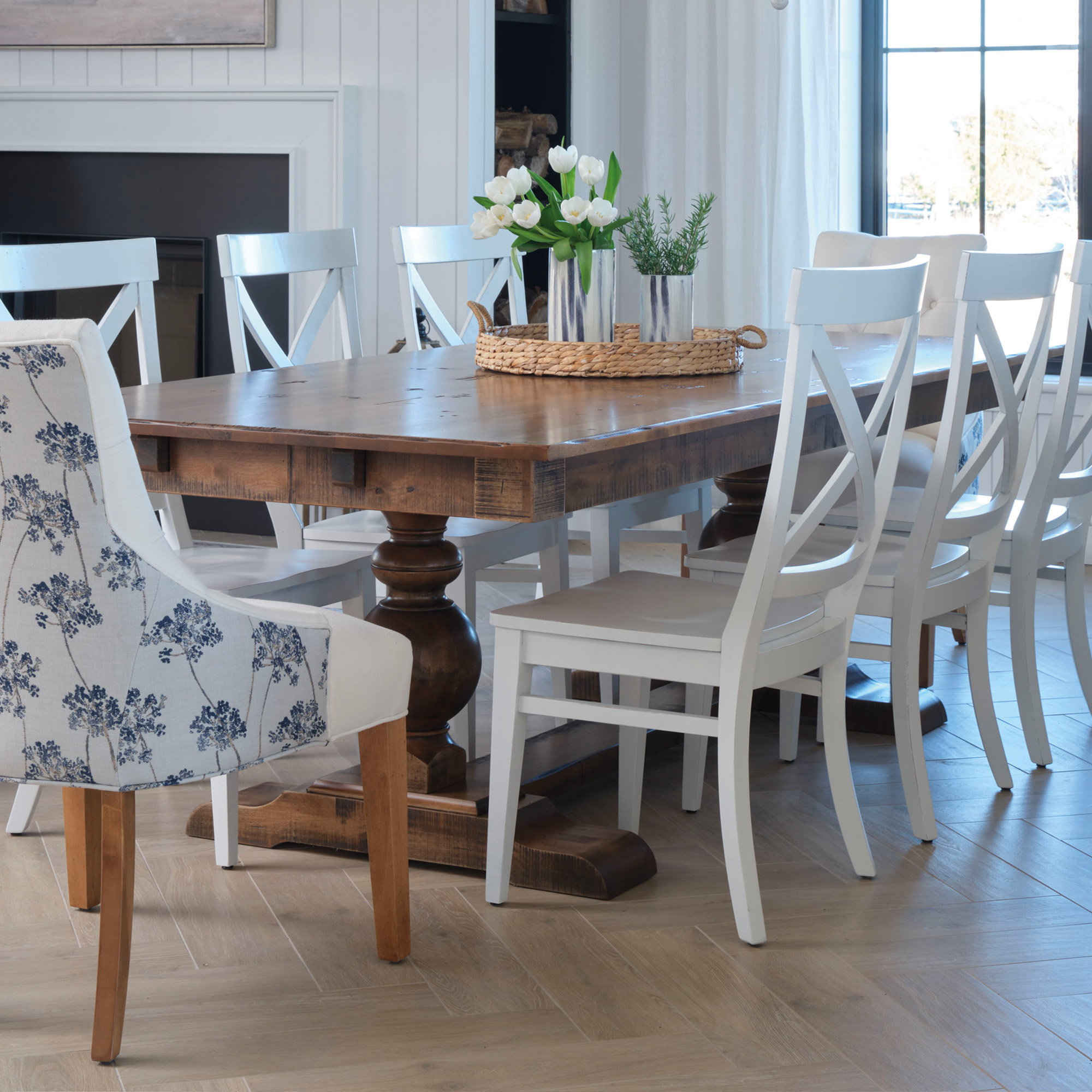 This gorgeous country-style table is both delicate and classy thanks to its double base with curved and romantic lines.