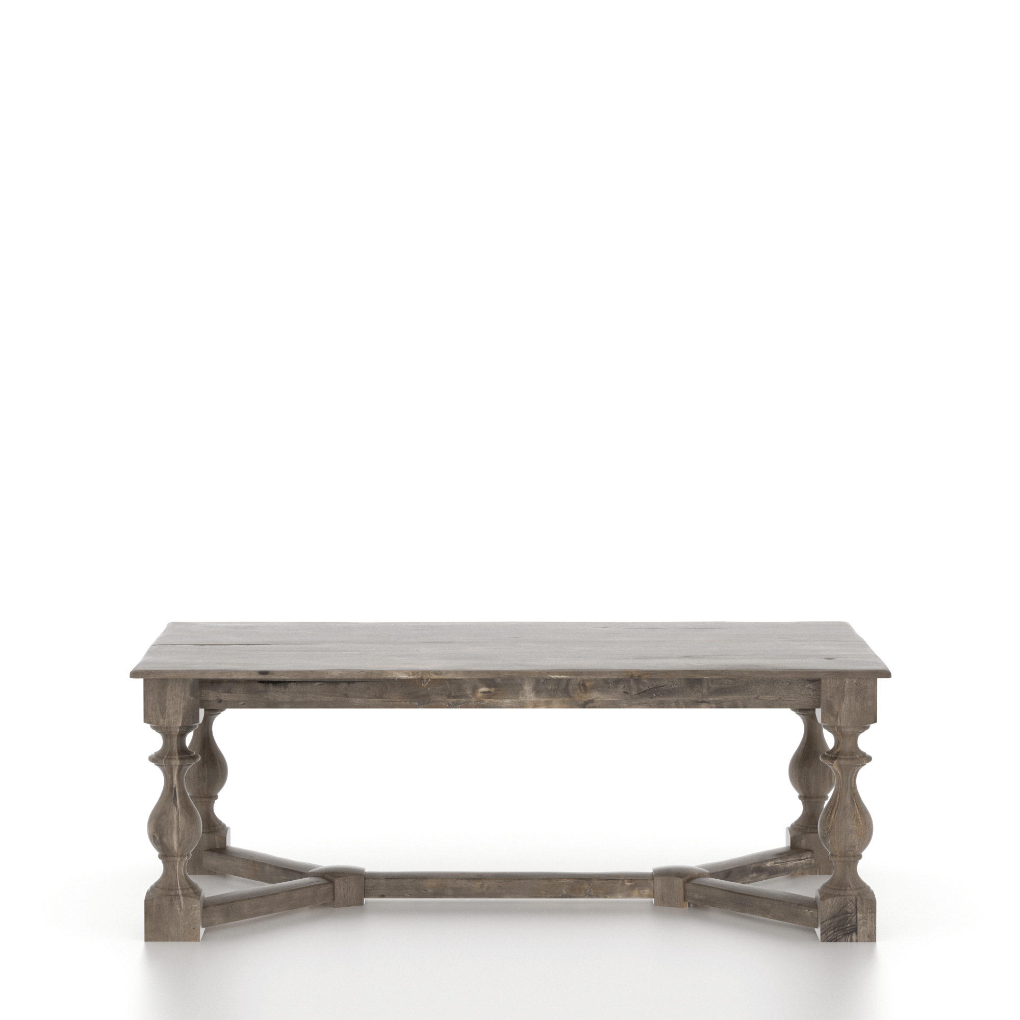 This spectacular rectangular table with its 4 crafted legs fully highlights the richness and beauty of solid wood while infusing an enchanting warm romantic country atmosphere. You will also appreciate its stunning distressed finish.