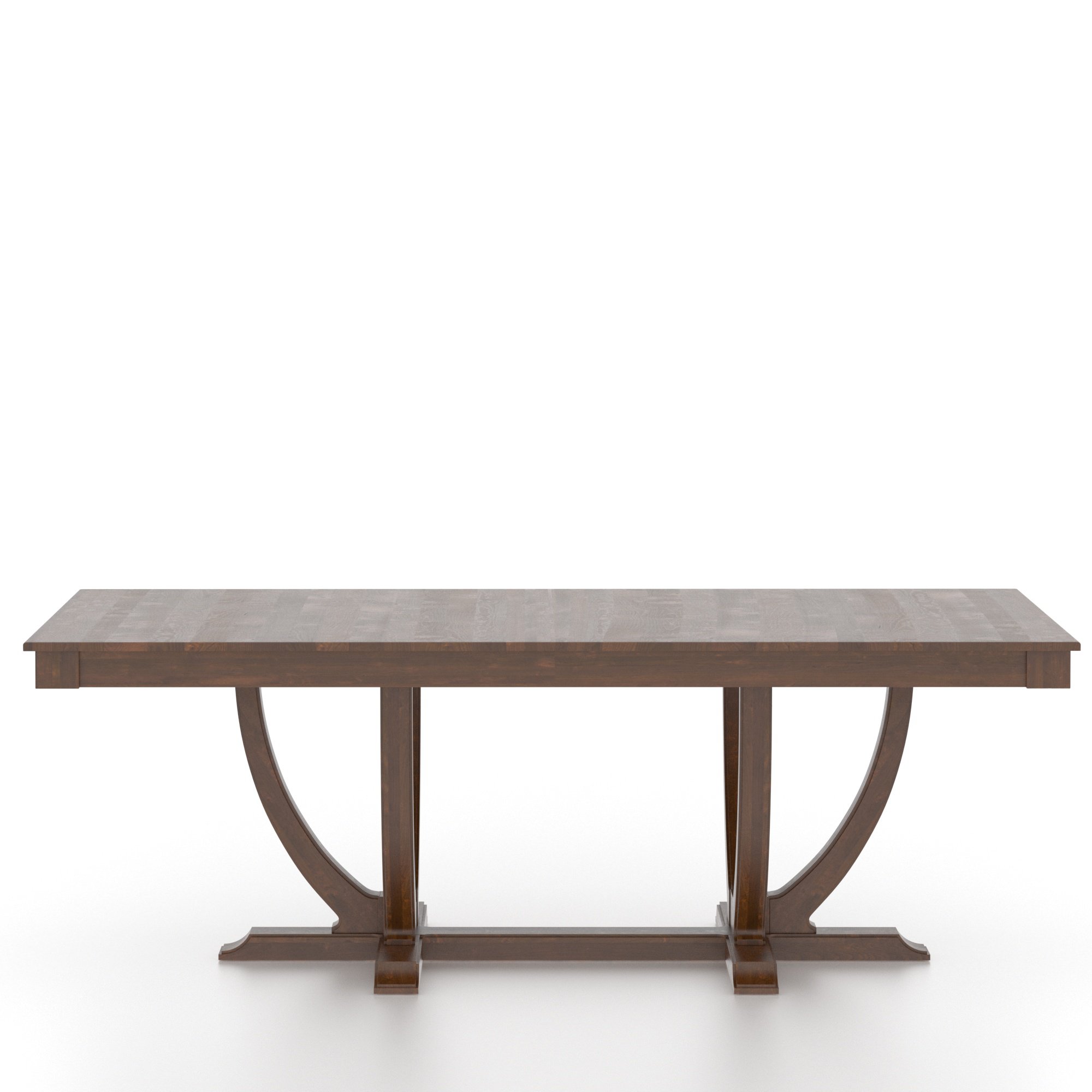 This uniquely designed rectangular wood table perfectly embodies the refined, sophisticated look of classic and transitional styles. Its rounded base adds character while integrating gracefully into any decor. Designed to stand the test of time, this table will become the centerpiece of your dining room.