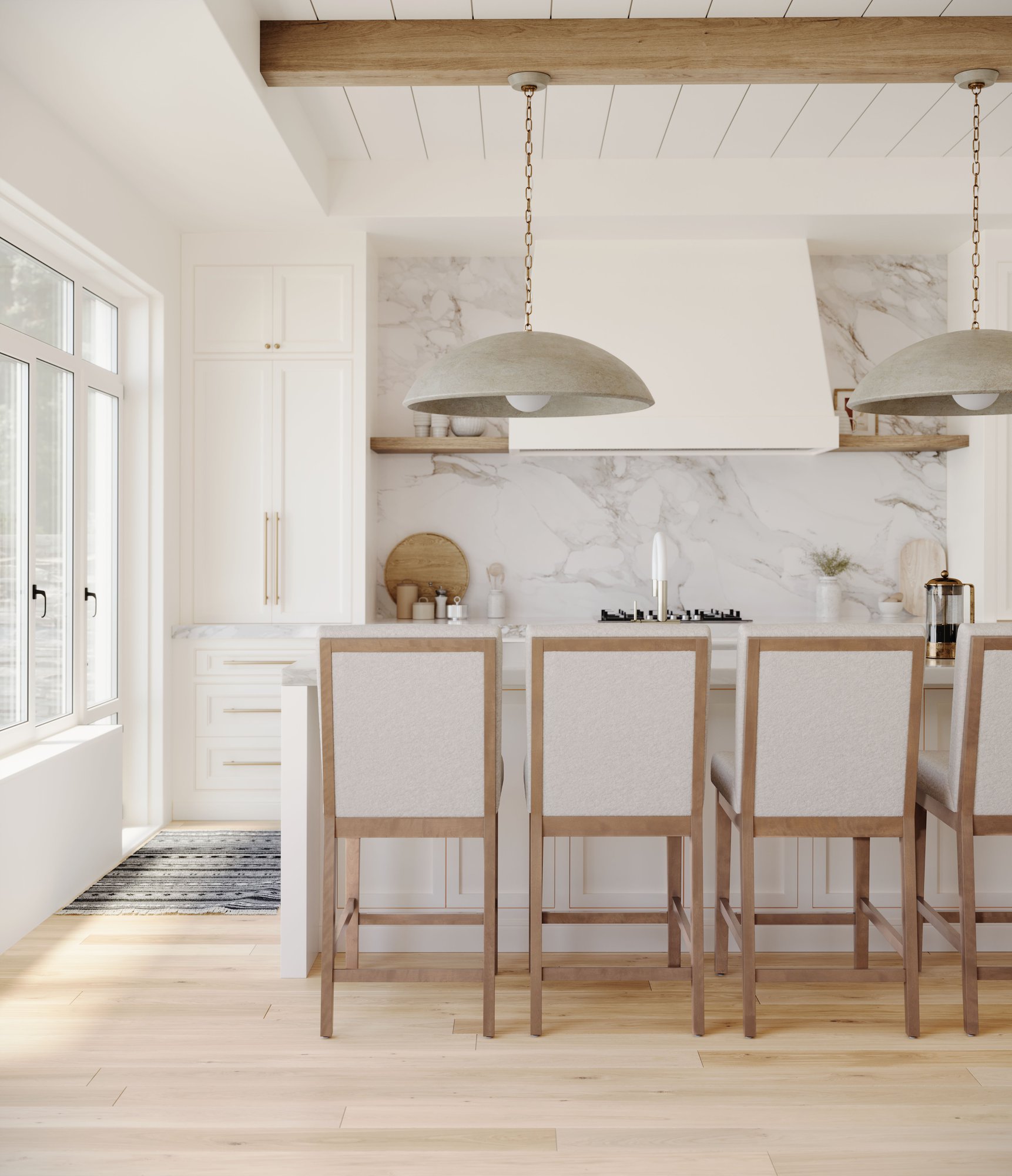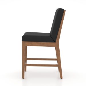 This modern stool is as comfortable as it is versatile. Its minimalist and refined design integrate seamlessly into all types of interiors. Made from solid wood and covered in the fabric of your choice, this kitchen stool stands out for its high-quality finish and timeless look.