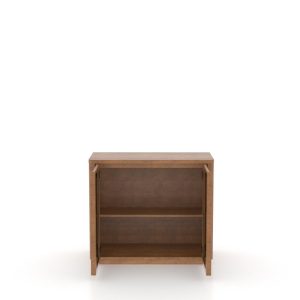 Discover this beautiful modern buffet with glass doors, a statement piece of sleek and refined design. Made from solid wood, this buffet features clean lines, wooden handles, and the addition of glass on the front. Whether in your dining room, living room or even your entryway, this buffet blends perfectly into a variety of spaces.