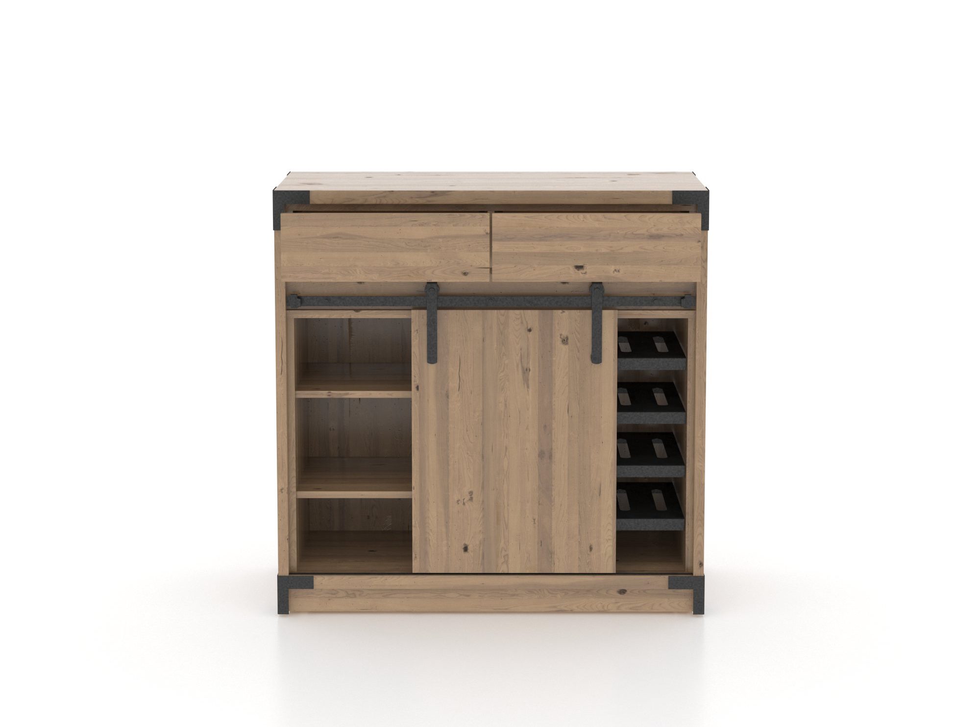 Looking to add a modern yet authentic feel to your home? This buffet from the Loft collection is ideal. The sliding door is convenient for storage and creates a great visual impact. You can also showcase your favorite wines on the metal shelves.