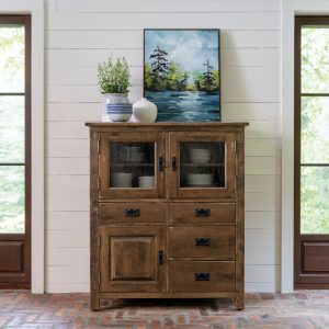 This stunning solid wood country buffet will create a great visual impact in your room with its slender shape, drawer and shelving arrangement, and beautiful distressed finish.