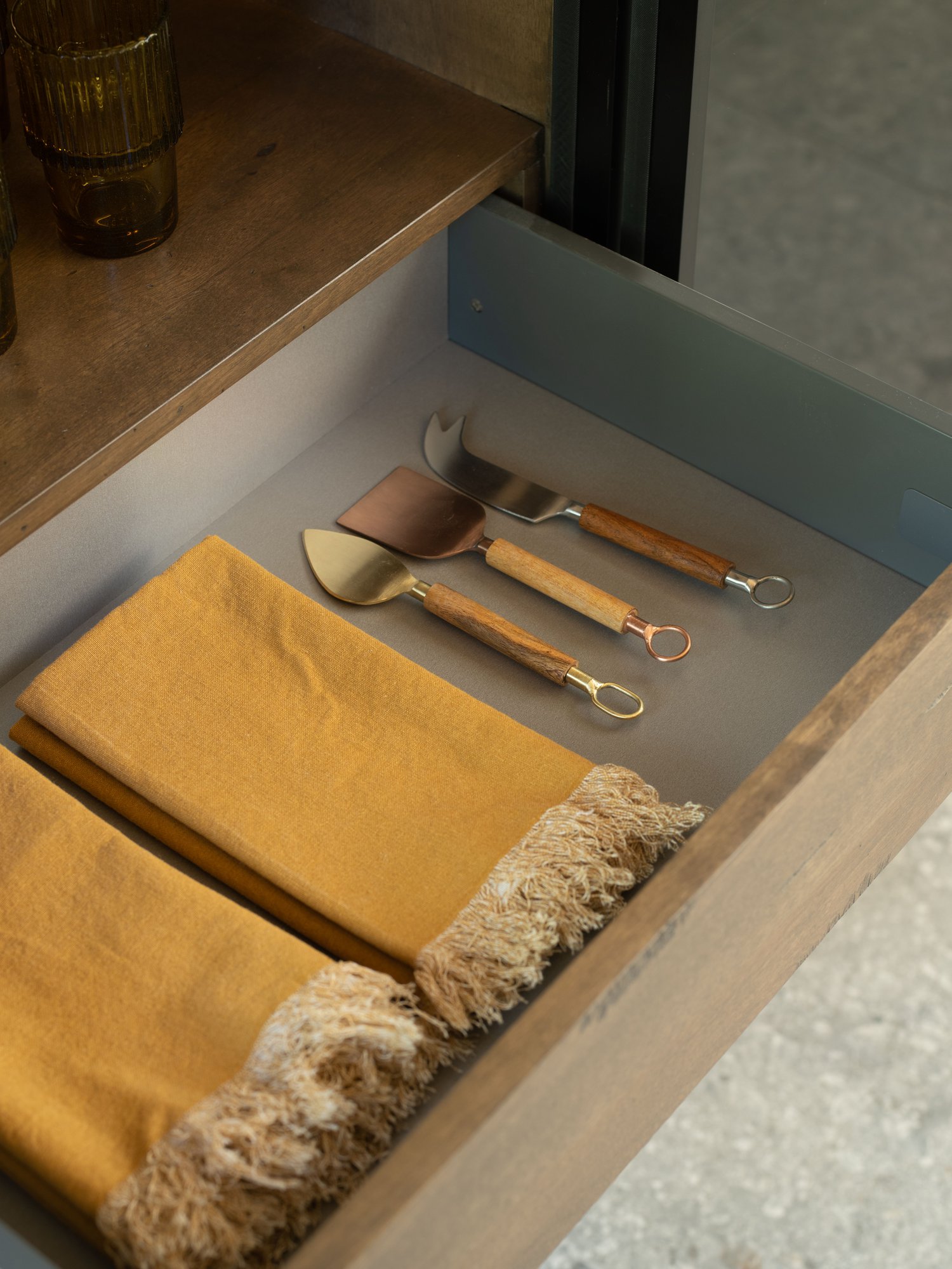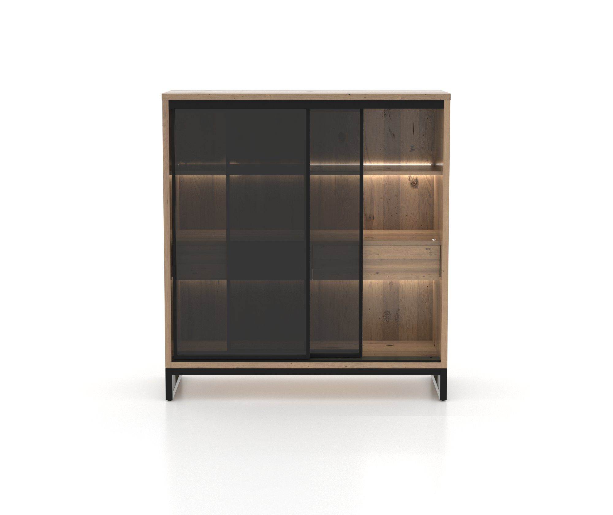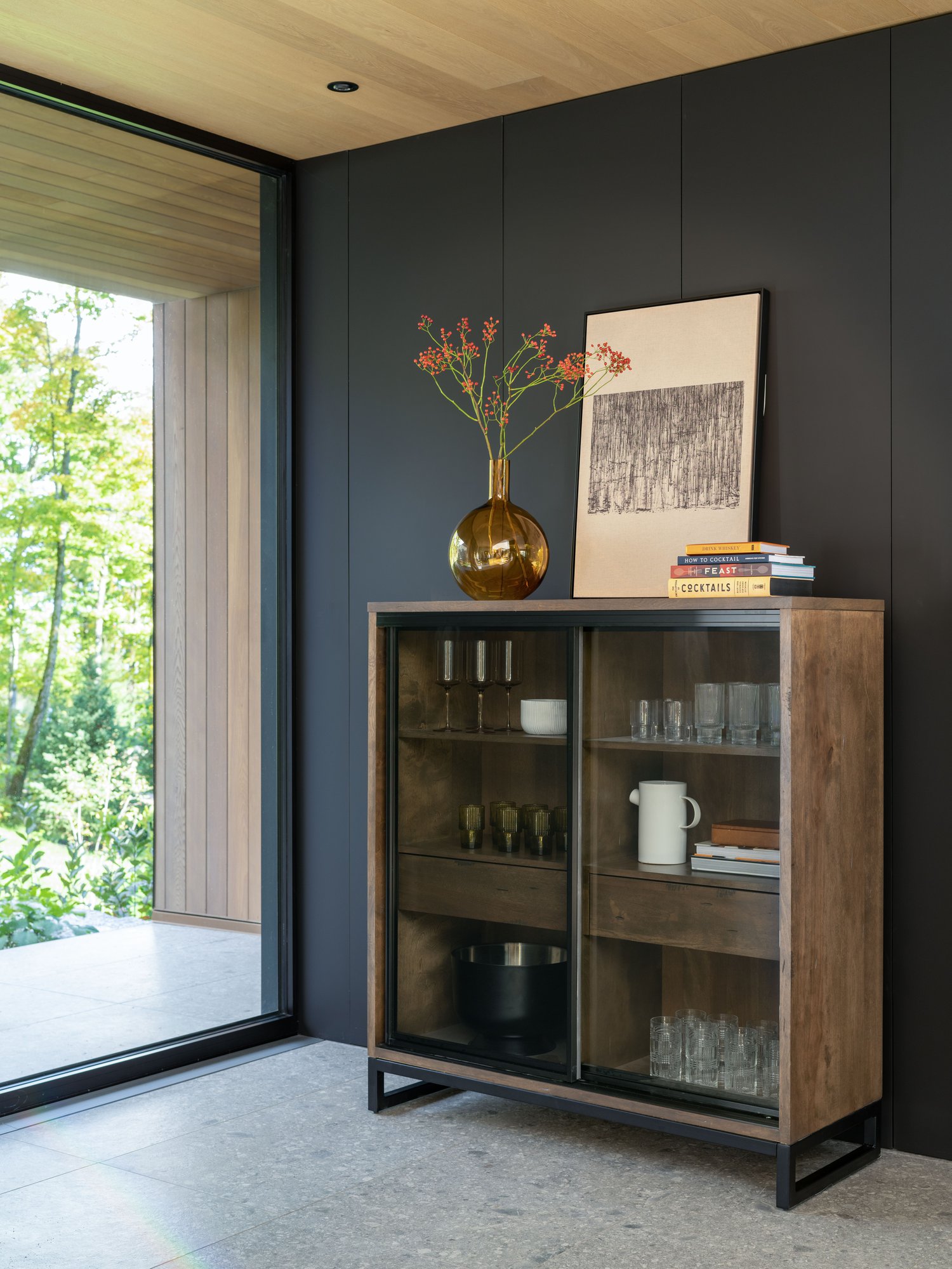 Make a statement with this sumptuous buffet. Its large sliding smoked glass doors and interior lighting, along with its stately design create a surprising balance.