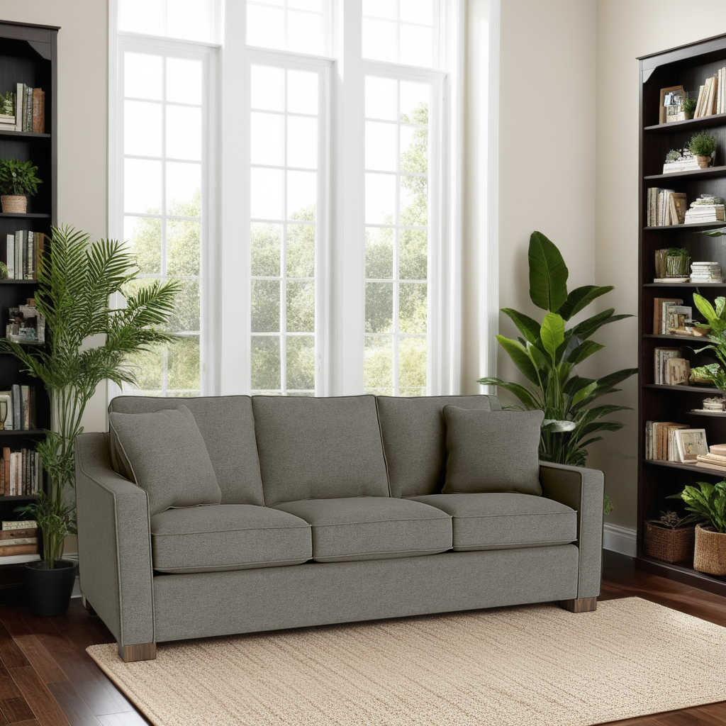 The Meta sectional is a sophisticated style with welting that borders the seats and the sloped arms. This style is great for smaller spaces with a petite structure and classic looks this style is sure to fit into any space. This collection comes in a variety of materials choices and configurations to make it into a sectional as well. This custom sofa is proudly made in Canada.
