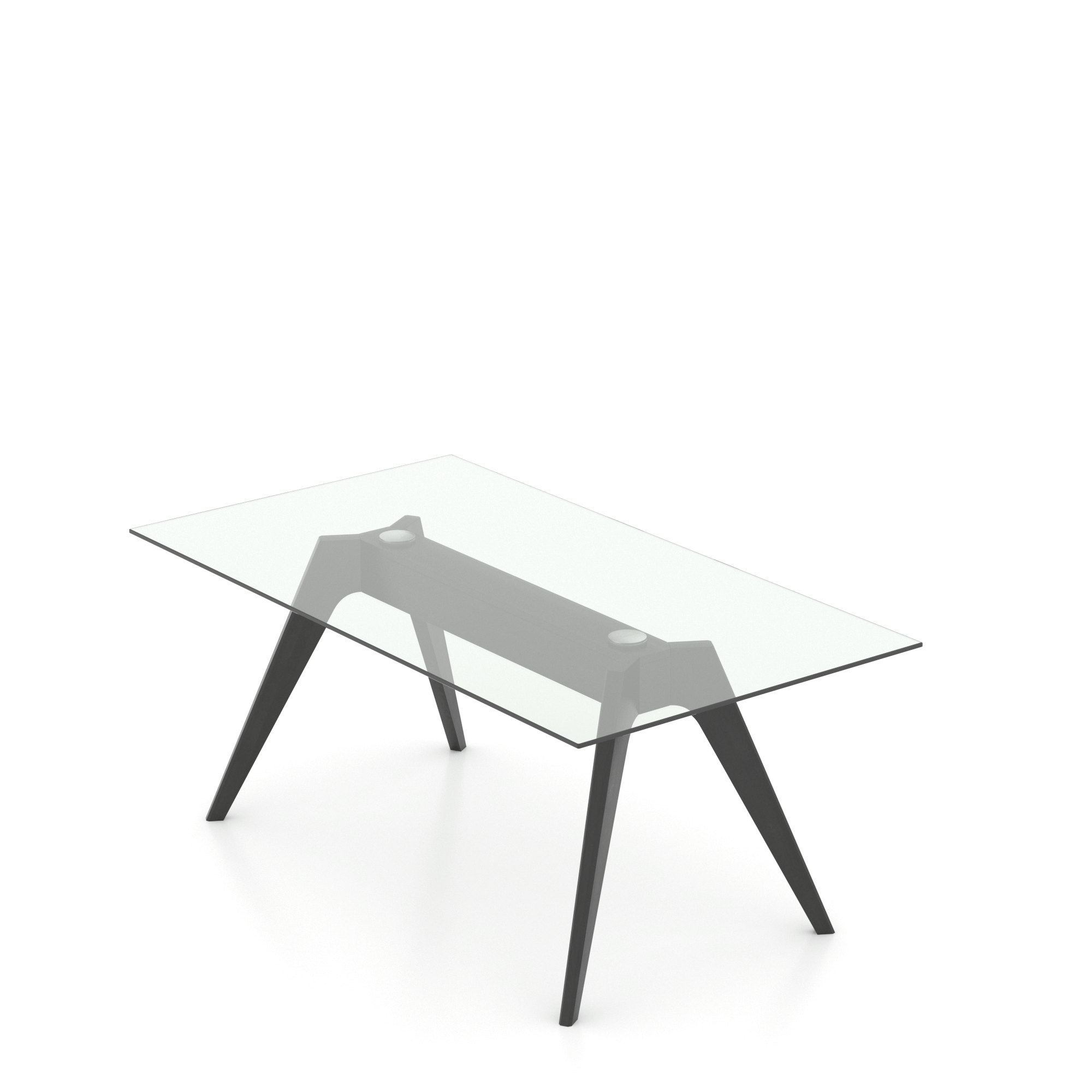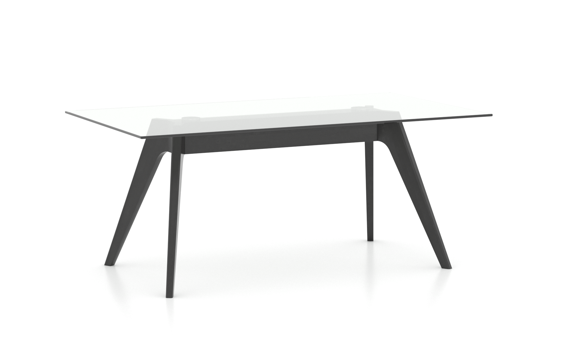 This beautiful round or rectangular table features clean, modern lines that will add unparalleled elegance to your dining room. A high-quality glass top seems to float on these stunningly angled solid wood legs.
