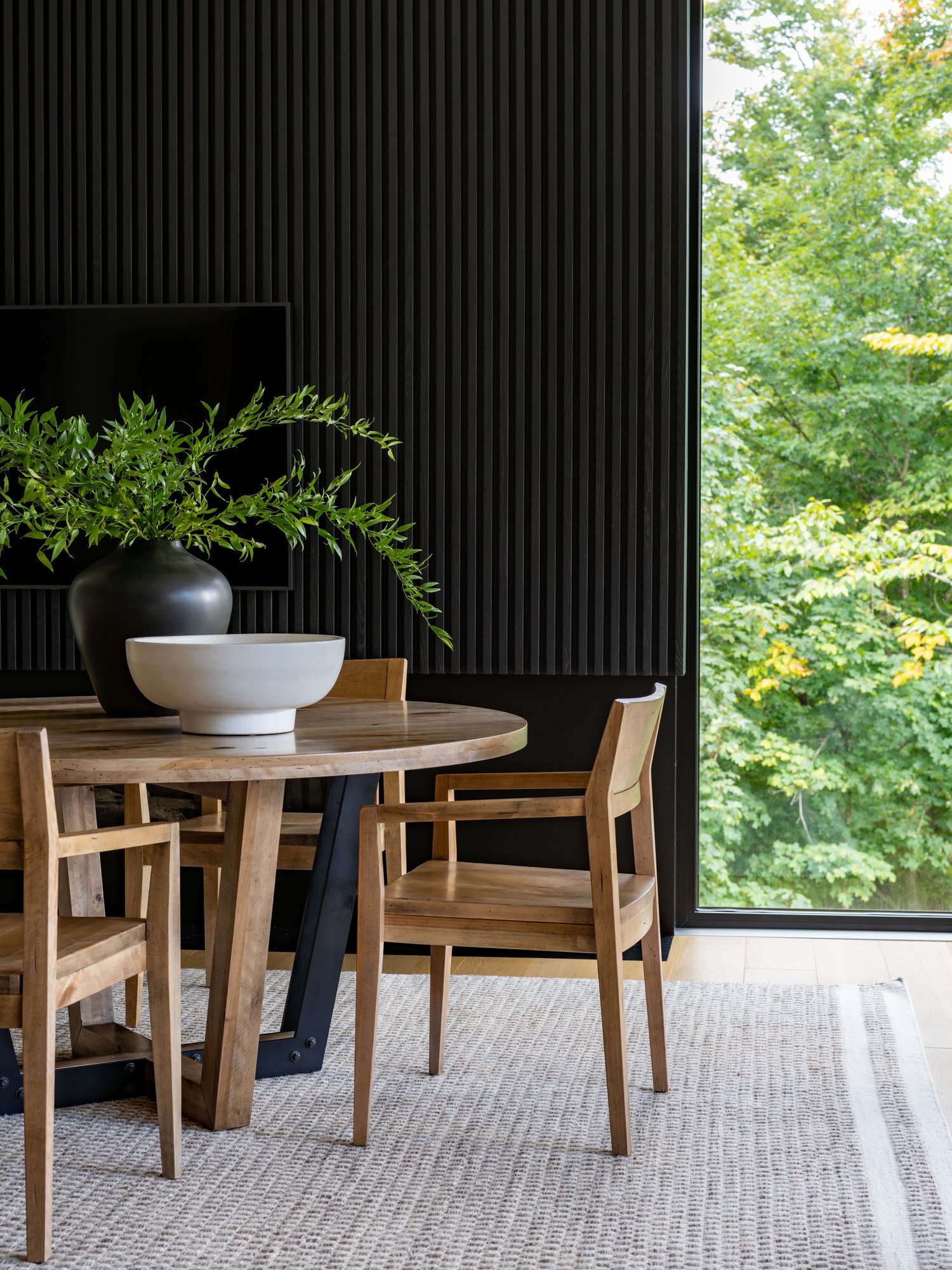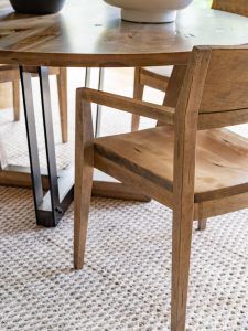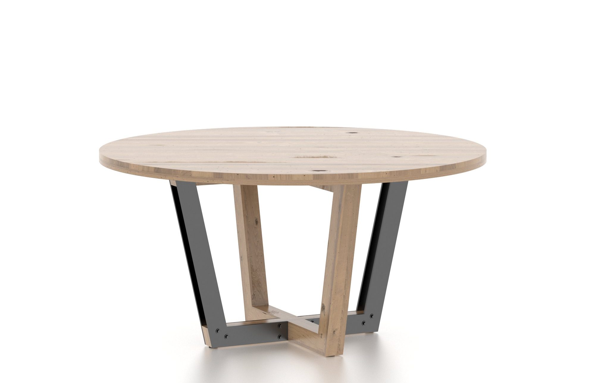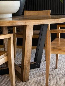 This round table is a masterpiece. Combining solid wood in a rustic finish, minimalist and cutting-edge design as well as beautiful black metal accents, this piece of furniture will certainly be the star of your dining room.