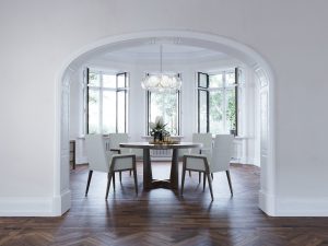 The 5177 chair can be used as both a dining arm chair and also as an accent chair to add warmth to a room with the wood wrapping up on the side of the arms.